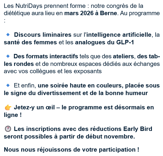 AccueilNewsNutriDays 2026 – le programme est prêt! NutriDays 2026 – le programme est prêt!News, News-Archiv Vers le programme